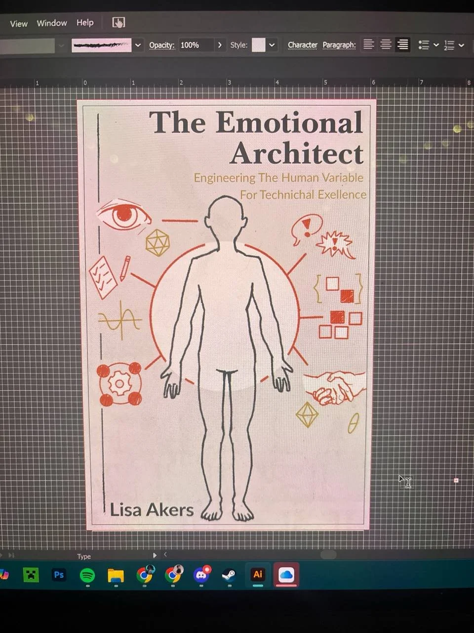 The first cover was my own creation in Canva. Clean typography, that split design with cream on top and dark gray on the bottom. The orbital imagery aligned with my logo, the color scheme matched my website. "The Emotional Architect: Engineering The Human Variable For Technical Excellence" in gold text over what looked like a technical schematic.